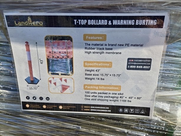 This bulk pallet includes 100 high-visibility bollard cones, designed for traffic control, parking lot safety, job sites, and event crowd management. Made from durable, weather-resistant materials, these cones provide long-lasting performance in both indoor and outdoor environments. Their bright color and reflective features ensure maximum visibility, helping direct vehicles and pedestrians safely.